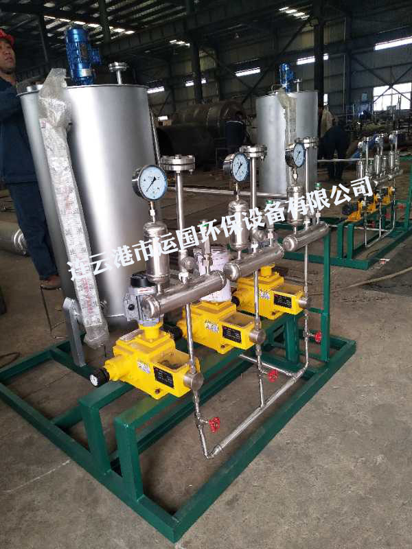 | 加藥裝置開發(fā)生產(chǎn)的一款自動(dòng)加藥產(chǎn)品,主要用于電廠的鍋爐給水、循環(huán)水、加聯(lián)氨、磷酸鹽等處理,也可用于石油、化工、環(huán)保、供水系統(tǒng)等行業(yè)。單元組合式加藥裝置,主要有溶液箱、計(jì)量泵、過濾器、安全閥、止回閥、壓力表、緩沖罐、液位計(jì)、控制柜等組成一體化安裝在一個(gè)底座上。用戶只需將組合式加藥裝置安放在加藥間,將進(jìn)水口、出藥口接好并接通電源即可啟動(dòng)投入運(yùn)行,這種工廠化的整套裝置,可大大減少設(shè)計(jì)和現(xiàn)場施工的工作量,對整機(jī)系統(tǒng)的質(zhì)量、安全和現(xiàn)場投運(yùn)提供了可靠的保證。 加藥裝置,采用的是機(jī)電一體化結(jié)構(gòu)形式,從安裝上可分為固定式和移動(dòng)式(推車式),每種形式的加藥裝置均配有攪拌系統(tǒng)、加藥系統(tǒng)和自動(dòng)控制系統(tǒng)。幾個(gè)固定式撬裝可組合成一個(gè)整體,加上變頻控制系統(tǒng),可實(shí)現(xiàn)就地控制、遠(yuǎn)程自動(dòng)控制、手動(dòng)和自動(dòng)相互轉(zhuǎn)換加藥。助利加藥裝置具有結(jié)構(gòu)緊湊,體積小、噪音低、工作平穩(wěn)、安裝簡單、操作使用方便等優(yōu)點(diǎn)。 加藥裝置通過不同的工藝設(shè)計(jì),精確配置各類固體和液體的化學(xué)藥品的溶液,再用計(jì)量泵準(zhǔn)確投加,以達(dá)到各種設(shè)計(jì)要求。如除垢、除氧、混凝、加酸、加堿等。 加藥過程可手動(dòng)操作,也可通過PC機(jī)、磁翻板液位計(jì)、PH計(jì)、行程控制器、變頻器等各種電器、儀表、使加藥裝置成為機(jī)電一體化產(chǎn)品、實(shí)現(xiàn)自動(dòng)控制。 加藥裝置的加藥量及加藥壓力,可根據(jù)工業(yè)流程的需要,選取合適的計(jì)量泵。流量從1L/h到8000L/h,壓力從0.1MPa到25MPa范圍內(nèi)均可選擇到合適的產(chǎn)品, 計(jì)量泵的計(jì)量精度可高達(dá)±1%,并且可以實(shí)現(xiàn)多種介質(zhì)同時(shí)輸送,單獨(dú)調(diào)整。 加藥裝置中溶液箱的容積可由最小0.1m3到20m3,可根據(jù)加藥量選定,根據(jù)輸送介質(zhì)的不同,有多種材料可供選擇,如碳鋼(碳鋼襯膠)、不銹鋼、非金屬材質(zhì)(PE、PVC、PP、PTFE)等。 性能描述 全套裝置主要包含進(jìn)料系統(tǒng)、儲(chǔ)藥桶、加藥系統(tǒng)、動(dòng)力控制系統(tǒng)等。 |