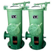 本裝置由收球網、二次濾網(其類型、結構另頁介紹)、裝球室、膠球輸送泵和電氣控制柜等部件組成。對大機組采用單元制系統即凝汽器每一側使用收球網、裝球室、膠球輸送泵各一臺;對于小機組通常采用共用制系統即凝汽器兩側共用裝球室、膠球輸送泵各一臺,收球網、二次濾網、分匯器等每側各一臺。