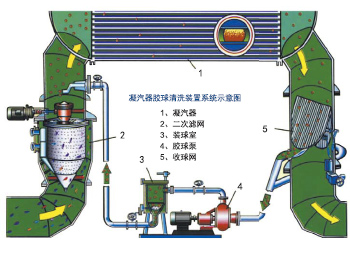 膠球清洗裝置可在機組不減負荷的情況下清洗凝汽器冷卻管,提高凝汽器的傳熱效果,防止汽輪機熱效率因背壓升高而降低,同時可防止冷卻管因結垢而腐蝕,延長冷卻管的使用壽命,是節能和改善勞動條件的理想設備。